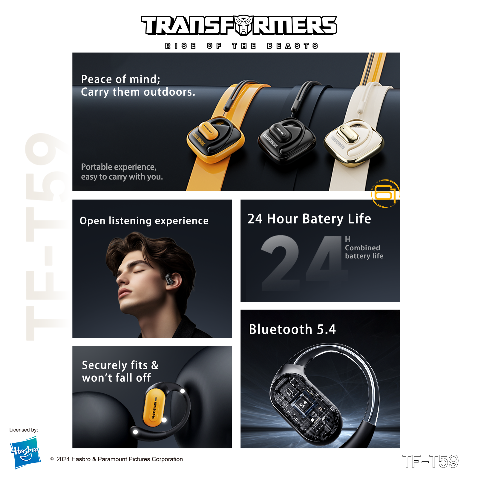 Experience secure-fit comfort, high-fidelity audio, and all-day performance with the Transformers TF-T59 Ear-Hook True Wireless Bluetooth Earbuds. Designed for active lifestyles, these ear-hook earbuds stay firmly in place during workouts, runs, gaming sessions, commuting, and daily use—giving you uninterrupted sound wherever you go.