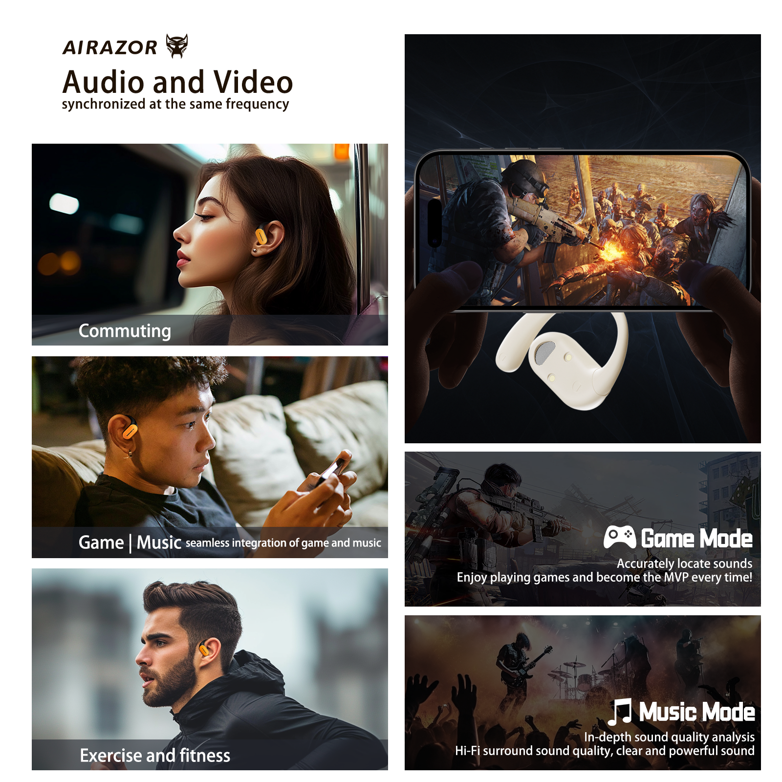 • Dual-Mode Audio – Switch instantly between High-Fidelity Music Mode and Low-Latency Game Mode for balanced entertainment and competitive gaming.