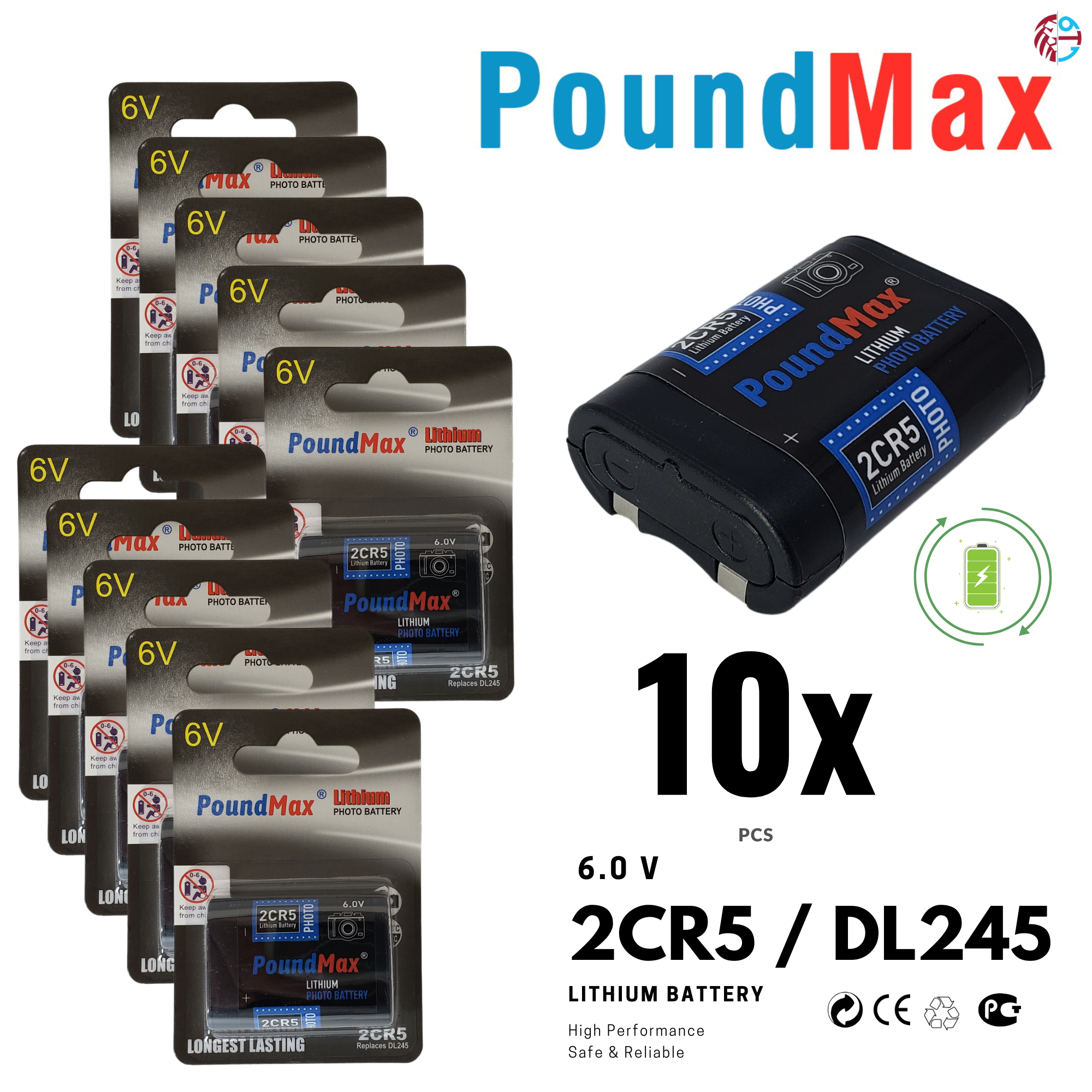 PoundMax 2CR5 / DL245 Batteries 6v Photo Lithium Battery