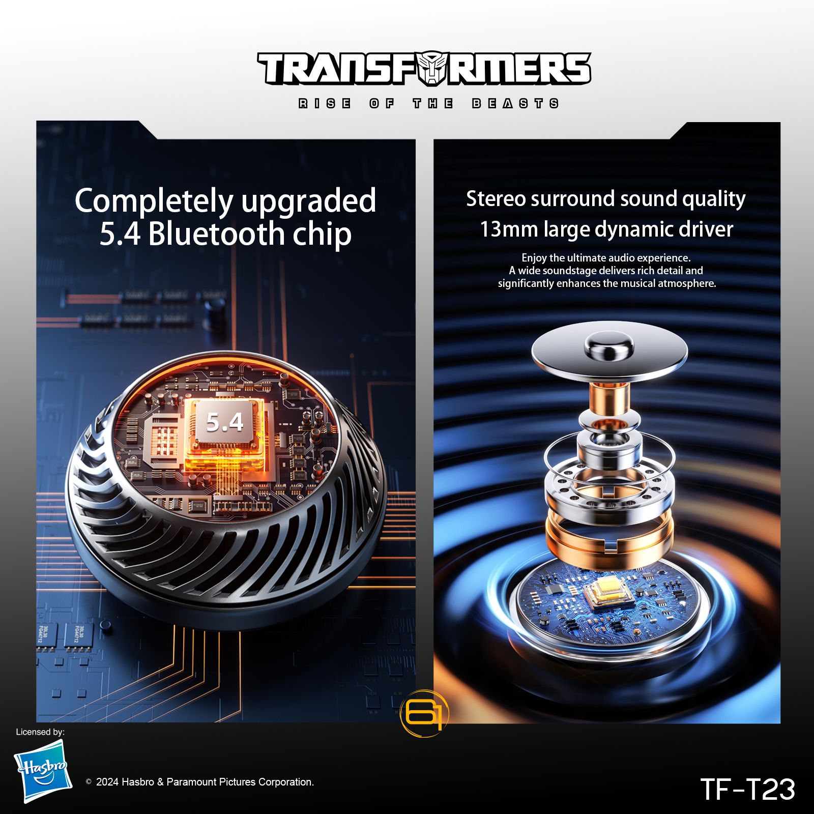 Transformers TF-T23 Wireless Bluetooth Earbuds - Premium Zinc Alloy Case RGB Breathing Lights, Gaming Mode, 13mm Loudspeaker, Deep Bass Sound, Long Battery Life, Type-C Fast Charge